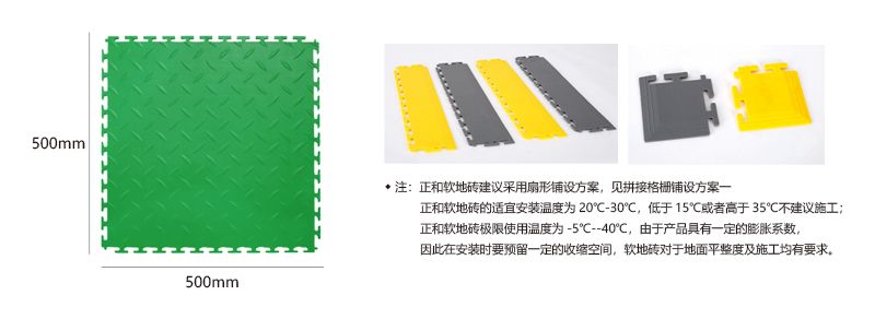 軟質絕緣地板能將每個獨立的地板快速拼裝成整體地面,專利型鎖扣結構連接能力更強,可承受叉車的來回碾壓。施工過程中無需膠黏劑等