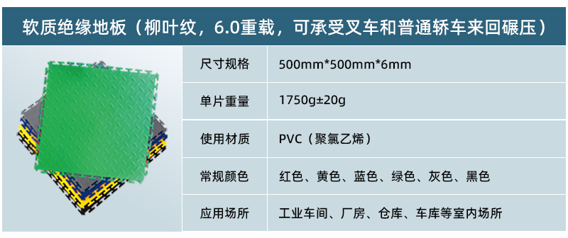 5、高承載,更防滑: 軟質絕緣地板為實心結構,只要地面承重沒有問題,其承載能力能夠達到每平米10噸以上。地板表面在生產過程中帶有